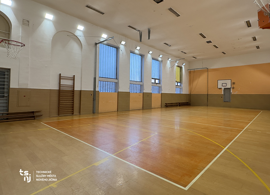 Velikost tělocvičny: šířka 12 m x délka 24 m x výška 10 m.